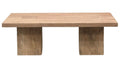 Bring bold, organic character into your living space with the Sequoia Rectangular Coffee Table. Crafted from solid mango wood, this substantial design showcases ultra-thick, chunky tops paired with two sturdy pedestal bases for a grounding, architectural presence. The natural oak finish highlights the rich, organic grain patterns of the mango wood, giving each piece a warm, artisanal feel. Thoughtful cutouts on the tabletop, positioned directly above the pedestal bases, enhance the handcrafted look while adding subtle design interest. Perfect as a standalone sculptural base or paired with a coordinating top, this piece anchors any room with modern rustic appeal.