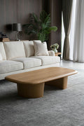 The Sia Coffee Table brings an organic, sculptural elegance to your living space. Its gently curved top and wide pedestal base create a fluid, modern statement piece, finished in Natural veneer for a warm, minimalist look.