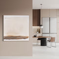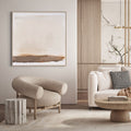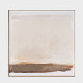 The painting is a minimalist abstract piece with a soft, muted color palette. It features large swathes of beige and cream tones dominating the upper portion, transitioning into darker browns and earthy hues towards the bottom. The brushstrokes are gentle and smooth, creating a sense of calmness and tranquility. The painting measures 40" x 2" x 40". This piece invites viewers to experience a moment of introspection and calm through its subdued colors and gentle brushstrokes.