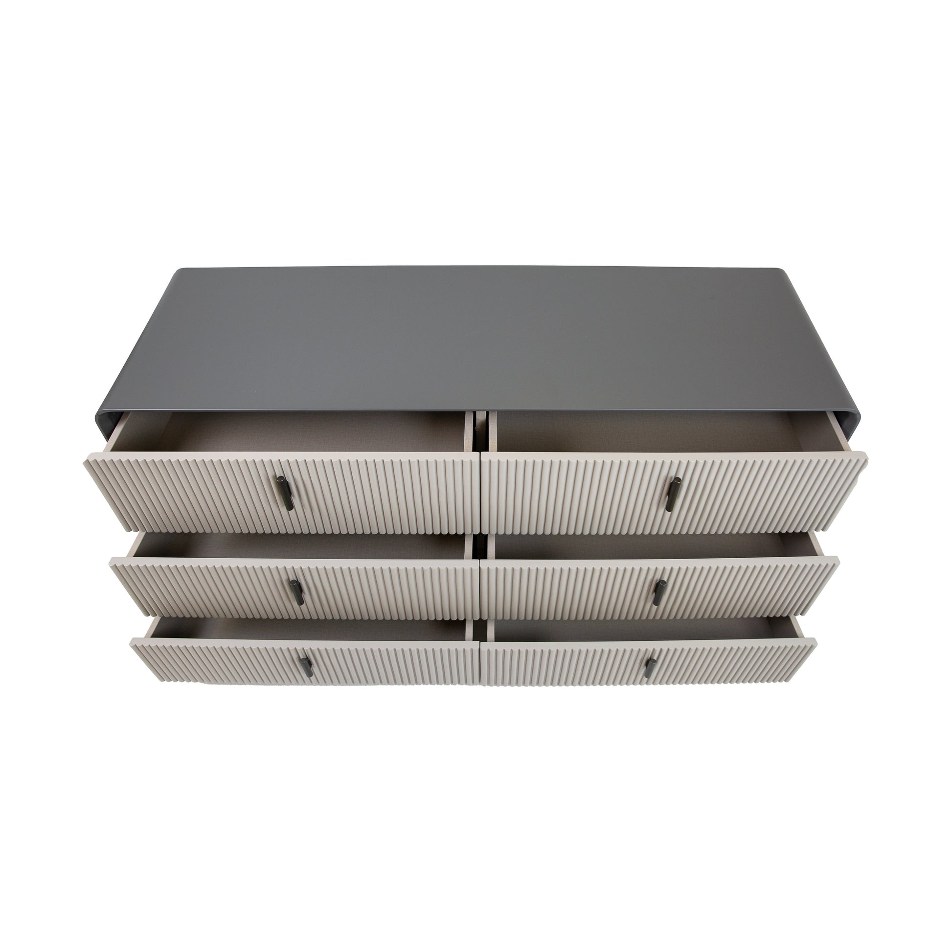 Expertly crafted with a matte two-tone finish, the Sofia Double Dresser brings sleek sophistication to any bedroom. Its clean-lined silhouette complements minimalist and transitional interiors, while six spacious drawers offer ample room for clothing, accessories, and linens. Designed for both style and function, this dresser pairs beautifully with the Sofia mirror or stands alone as a refined storage solution. Whether you're organizing essentials or elevating your décor, Sofia delivers understated elegance.