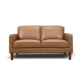 The Soria Loveseat expertly blends classic mid-century modern aesthetics with contemporary comfort. Upholstered in premium camel-colored top grain leather, it offers plush cushioning perfect for relaxing with loved ones. Its clean lines and tapered wooden legs reflect authentic mid-century design, creating a refined and enduring centerpiece. This loveseat not only elevates your living space with timeless style but also provides long-lasting comfort and durability.