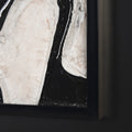 "Webs of Ink" by Studio M is a bold modern abstract artwork featuring fluid black forms weaving across a textured canvas of muted whites and grays. Accented with glossy gel-textured embellishments, the winding lines evoke the look of ink poured in motion, creating a sense of layered depth and tactile intrigue. Hand-painted and hand-embellished, this original piece channels organic energy and dynamic form. Elegantly framed under glass in a smooth black wood-look frame, it delivers a dramatic yet sophisticated presence to any contemporary space.