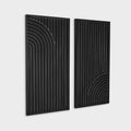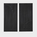 Enhance your living space with this sophisticated set of two metal wall decor pieces. Measuring 16" x 33" each, these sleek, black artworks showcase an intricate interplay of geometric arches and lines, bringing a contemporary flair to your interior design. Their minimalist yet striking design effortlessly adds a touch of modern elegance to any room.