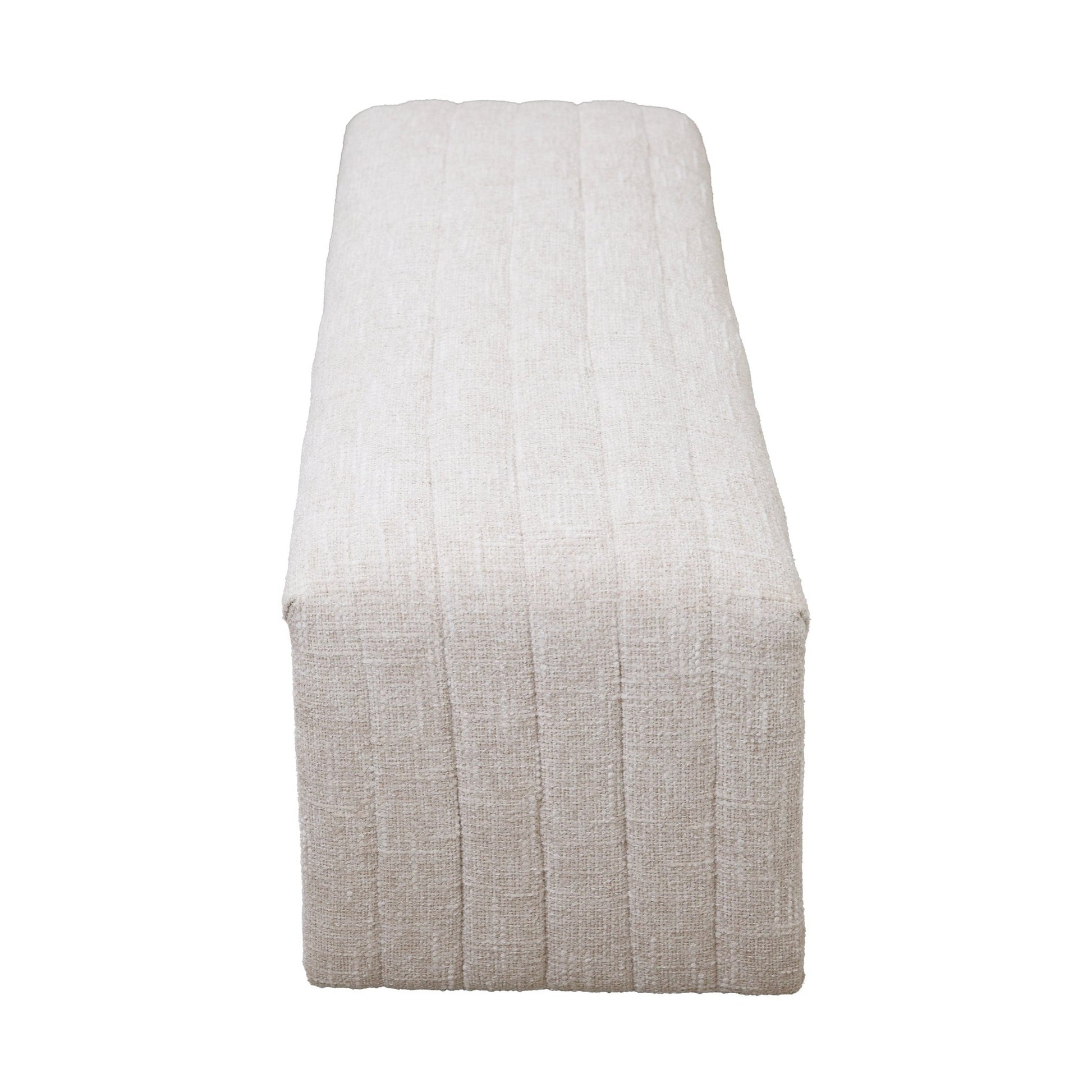 The Tera Bench features a sophisticated U-shaped silhouette with elegant channel stitching, wrapped in soft chenille-like fabric for a luxurious feel. Its compact profile makes it ideal for entryways, bedrooms, or living spaces offering functional seating without overwhelming your décor. Whether styled as a bench or decorative ottoman, Tera adds refined texture and modern flair.
