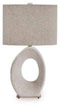 Curate a space that reflects your eye for artistic flair. This table lamp is crafted with a cream speckle finish that lets its unique geometric form shine. Elegantly accented by a goldtone base, this piece is cool, contemporary and utterly chic.