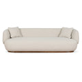 The Vaila Sofa offers a spacious three-seater design with elegantly curved arms that enhance both style and comfort. Upholstered for a cozy seating experience, it includes two complementary throw pillows that add an extra layer of relaxation and visual appeal. Ideal for living rooms seeking a blend of sophistication and everyday comfort.