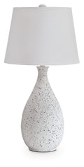 This table lamp takes contemporary style to new heights. An elegant teardrop silhouette and a textured speckle finish make it all the more stunning wherever you decide it shines brightest.
